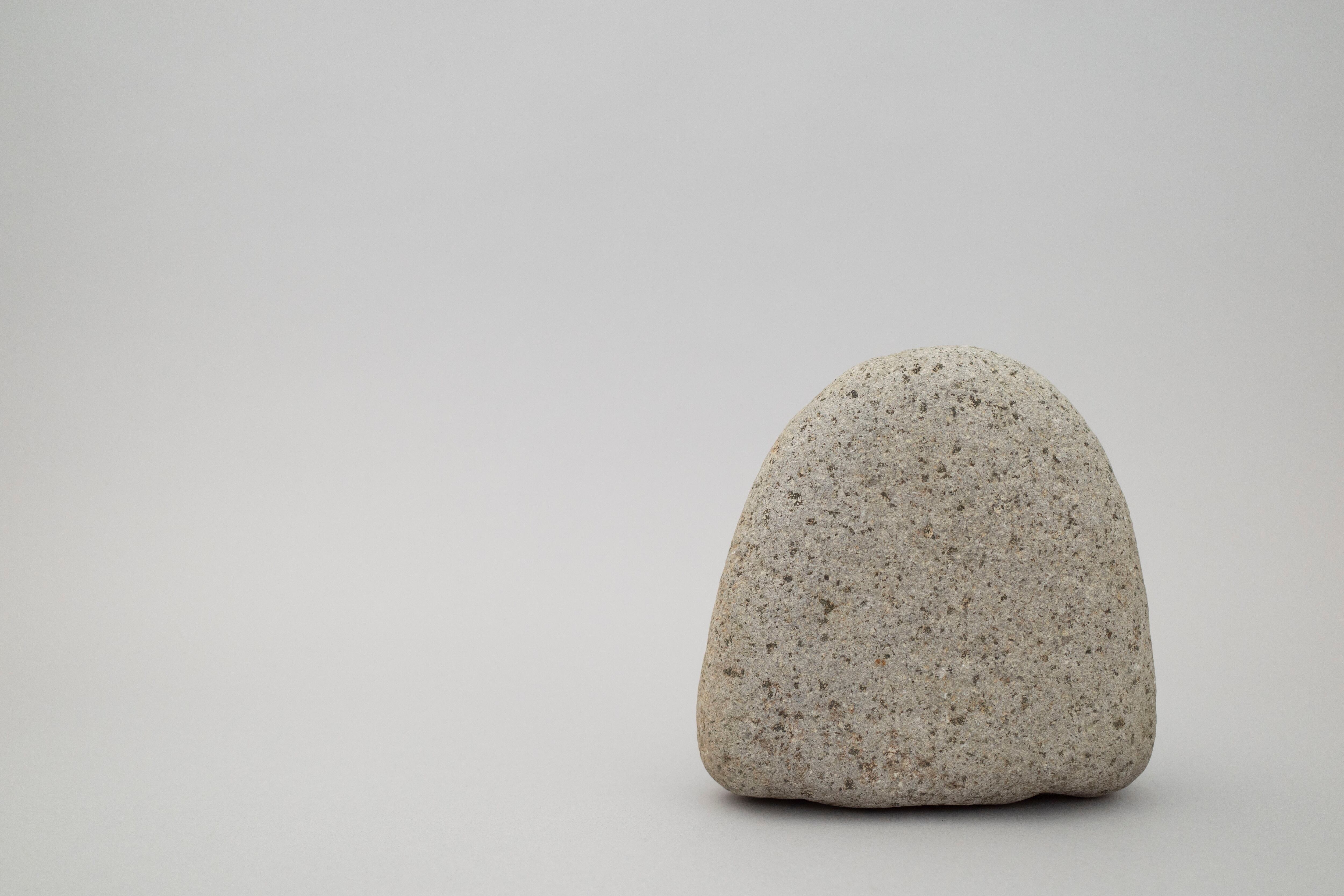 野道に立つ石仏のようなやわらかな形と表情で佇む石。