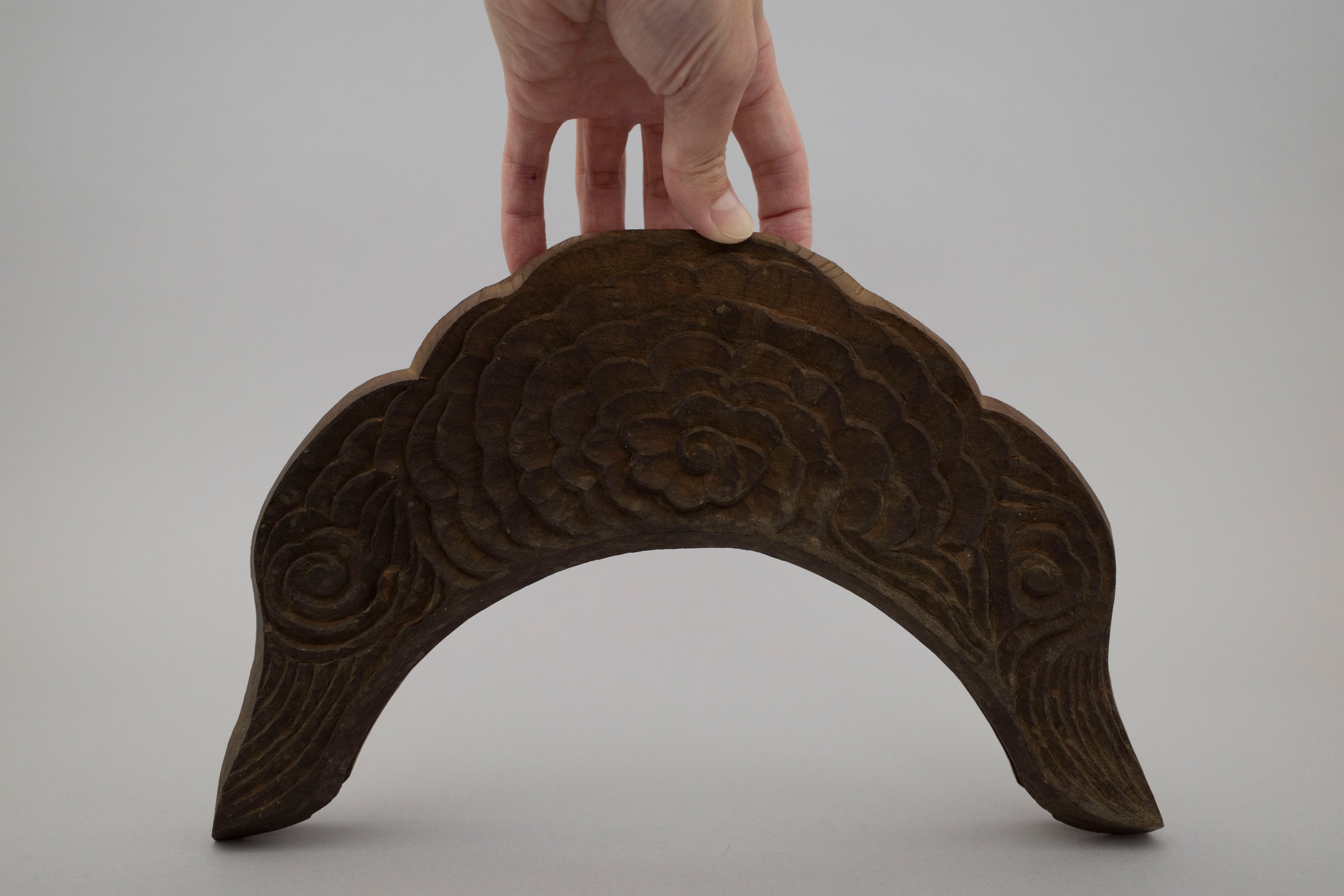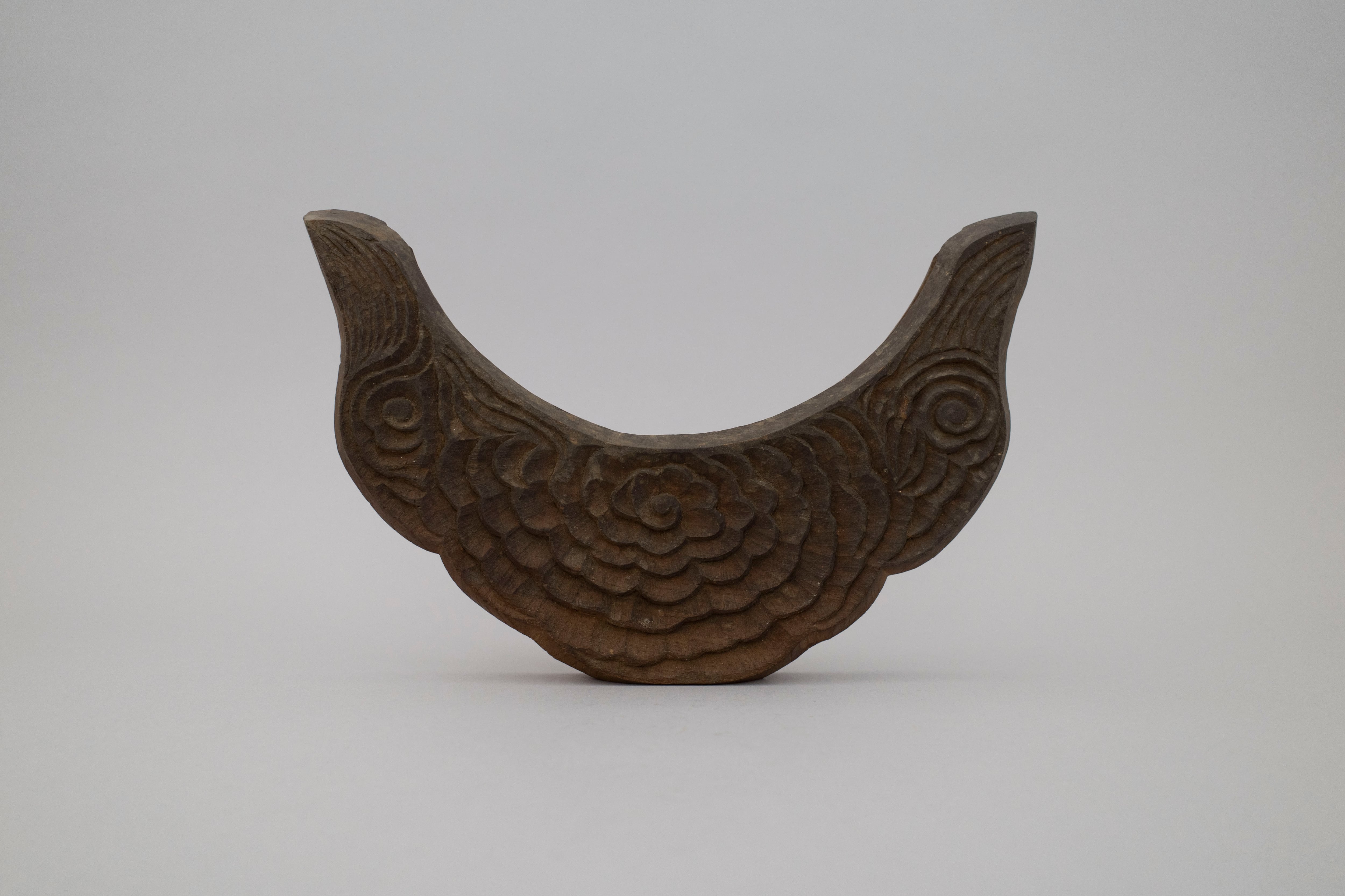 手彫りのほどよく揺らいだ線と味わい、バランスのとれた輪郭で自立する姿は不思議と見入ってしまう。