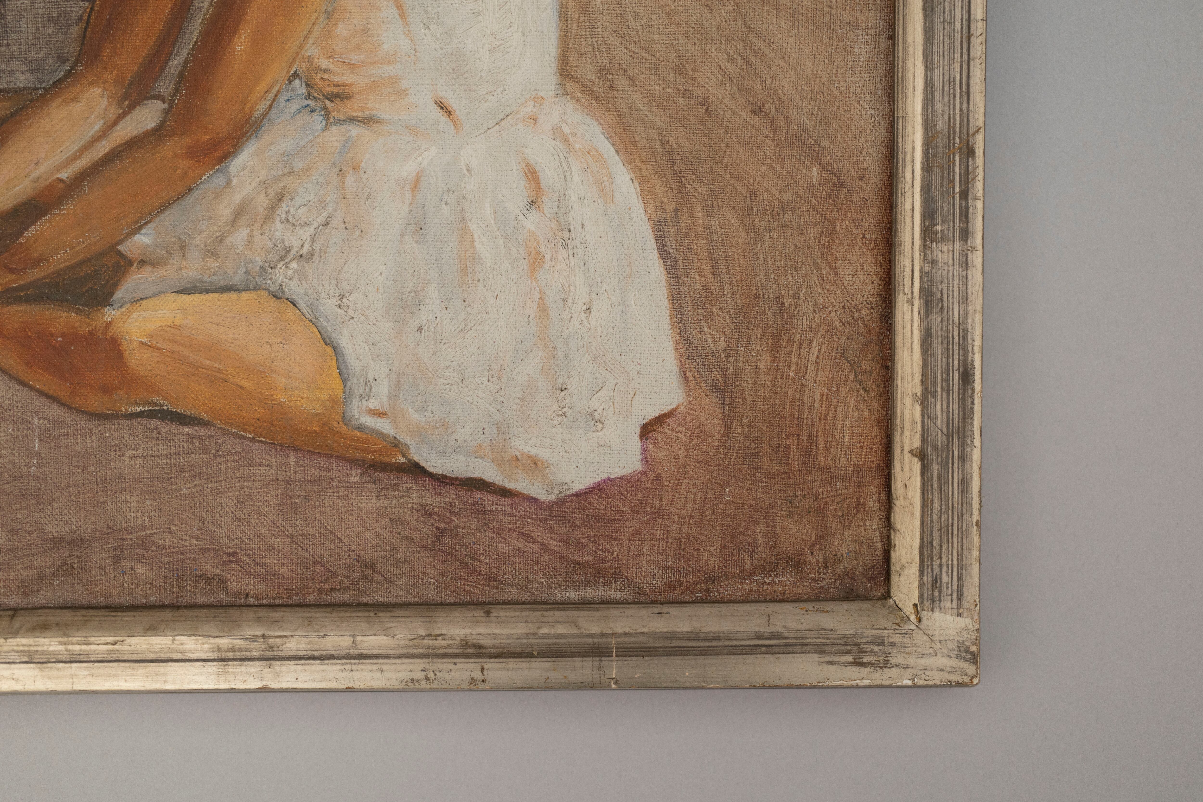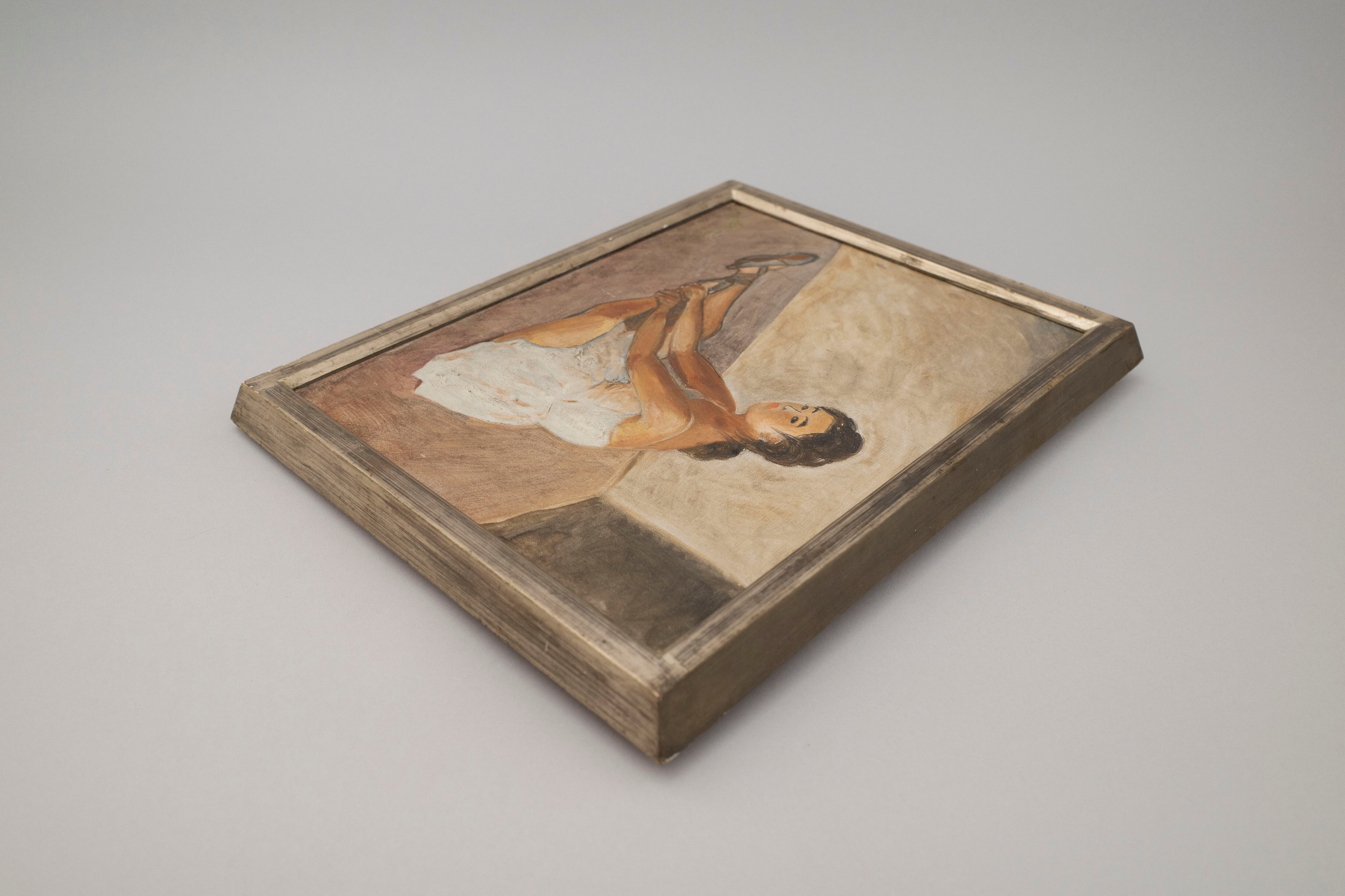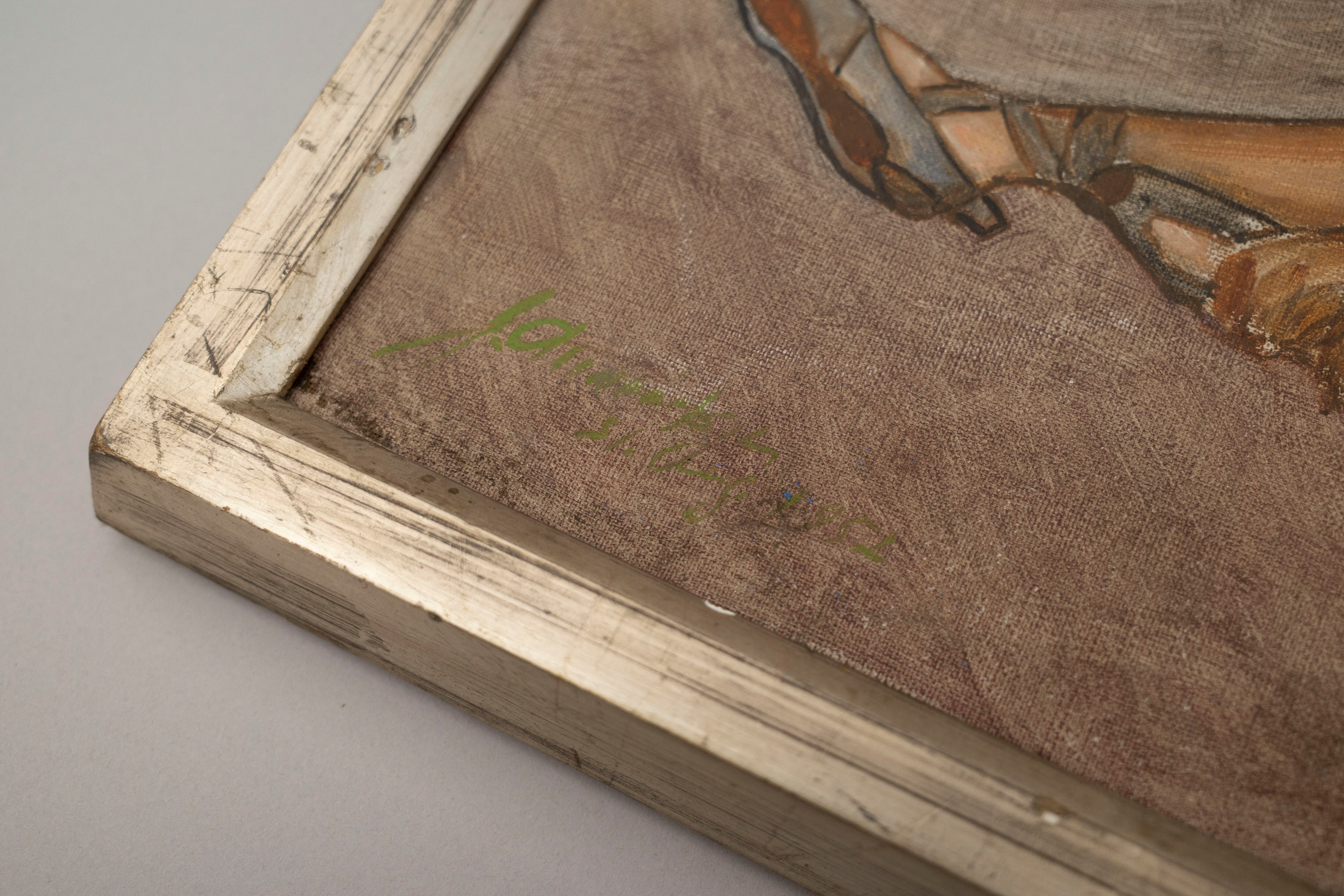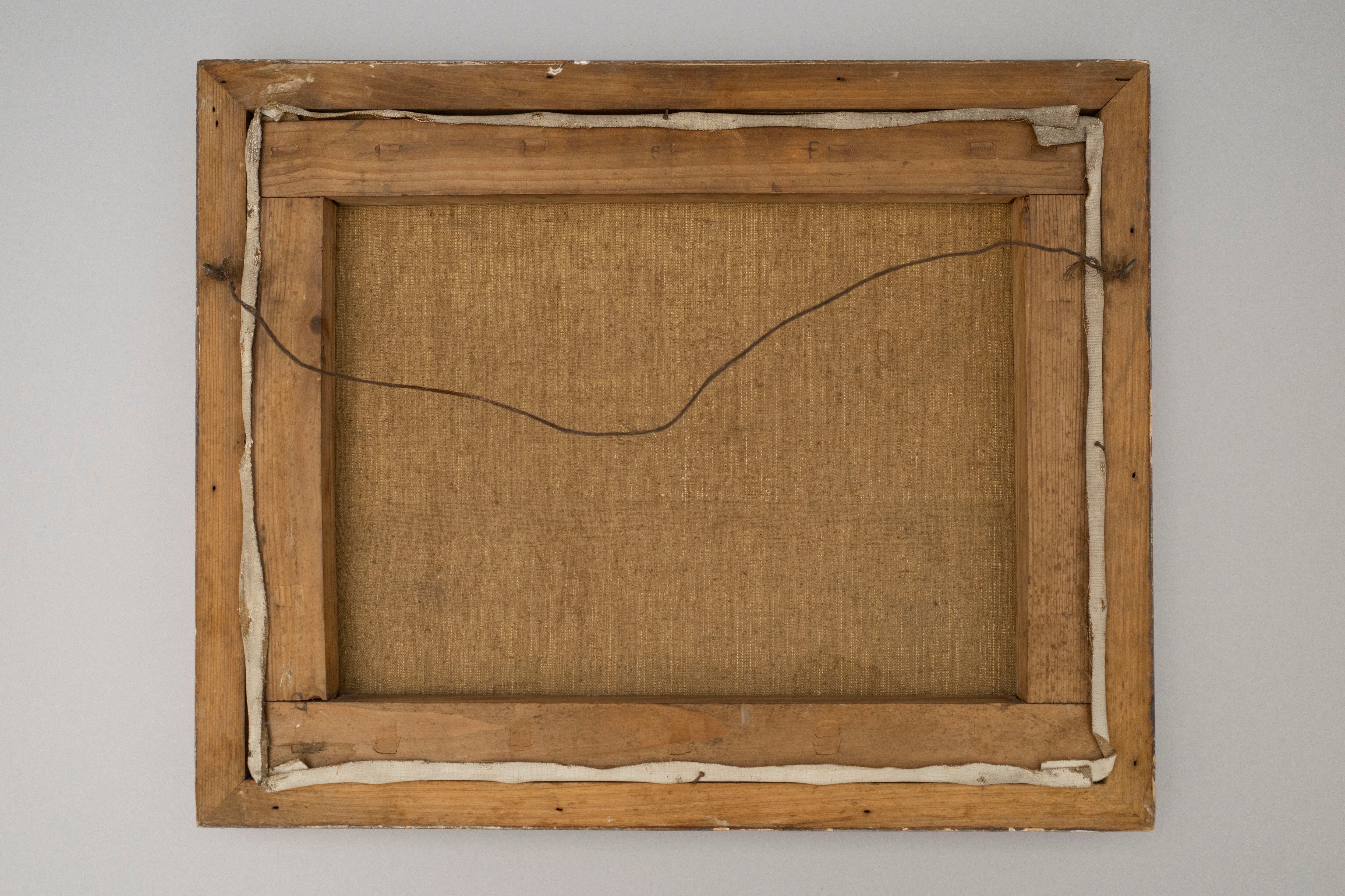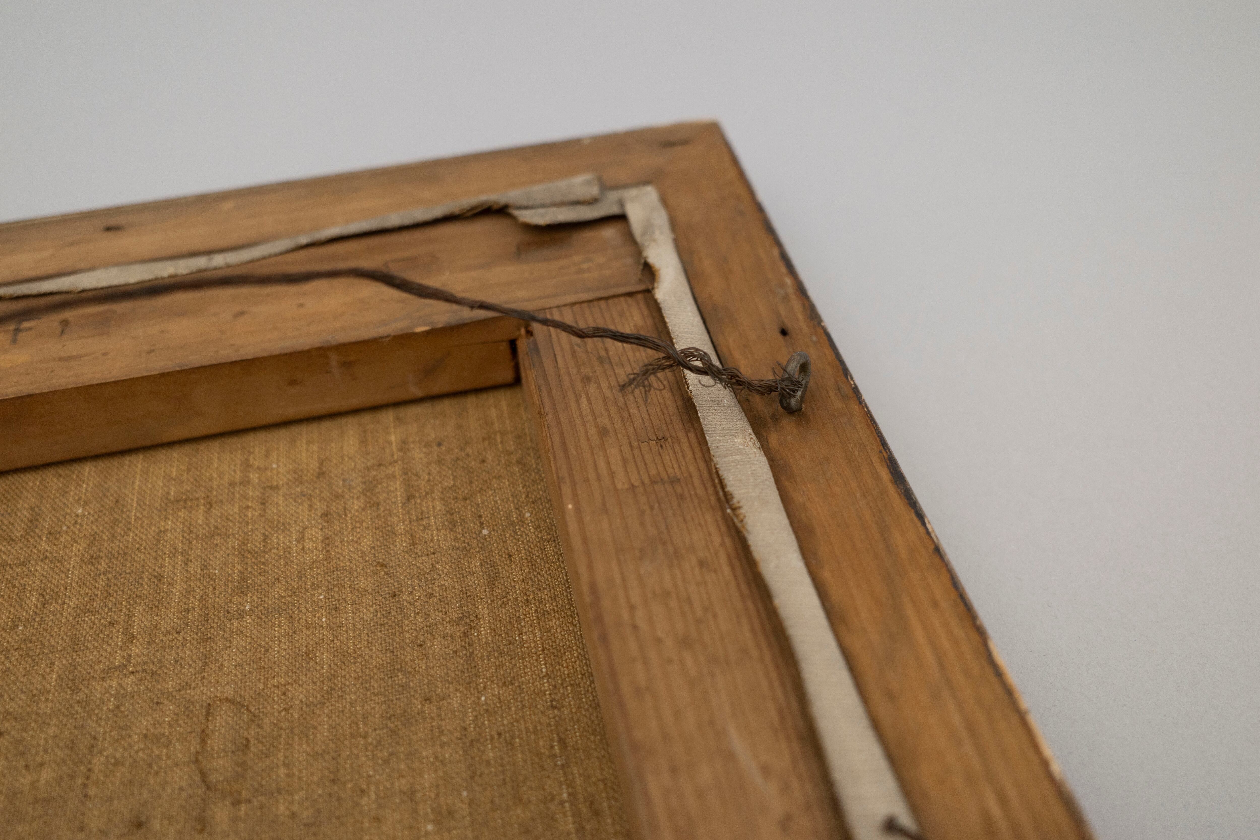くすんだ銀の額とベージュの部屋が
