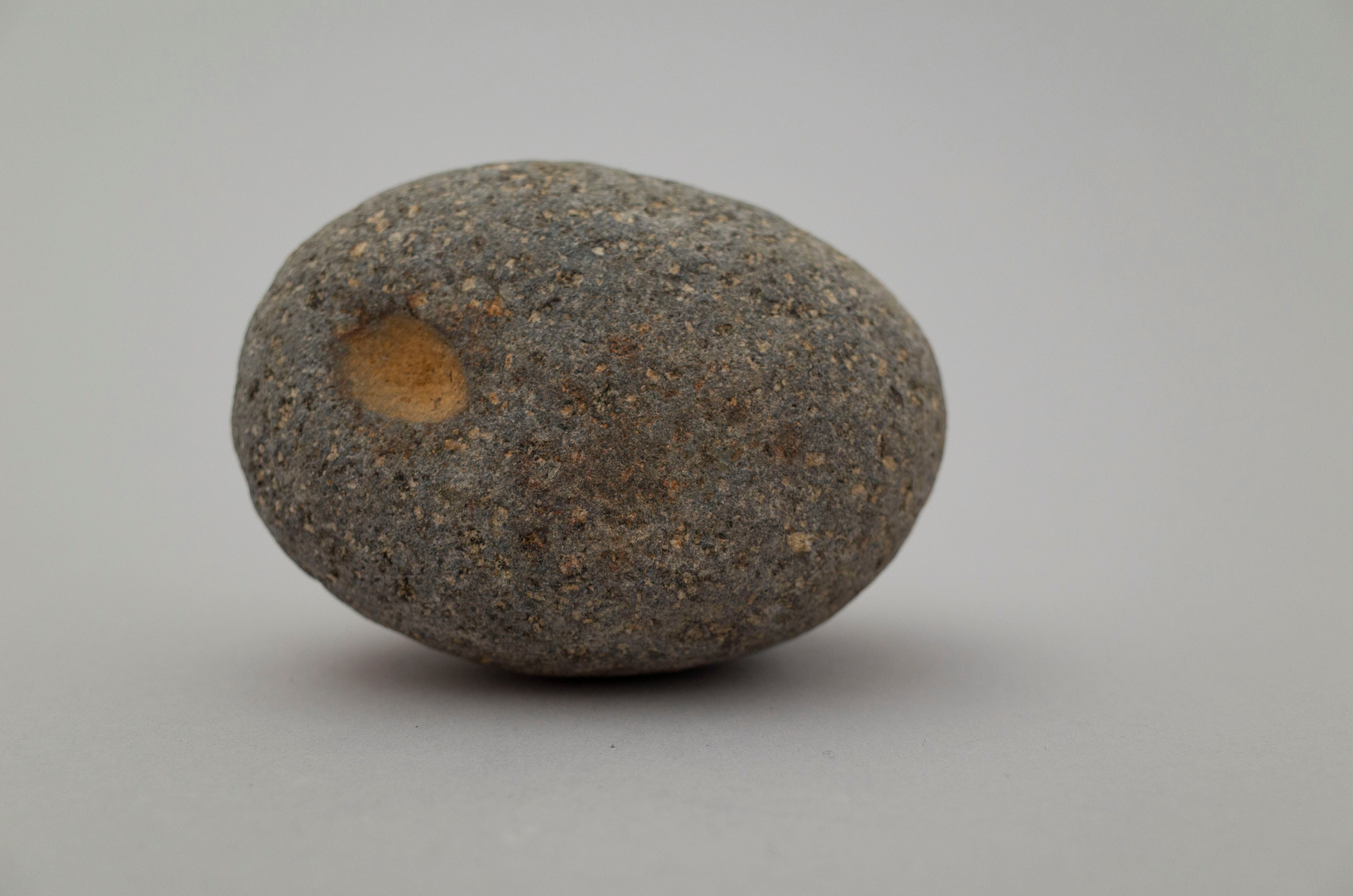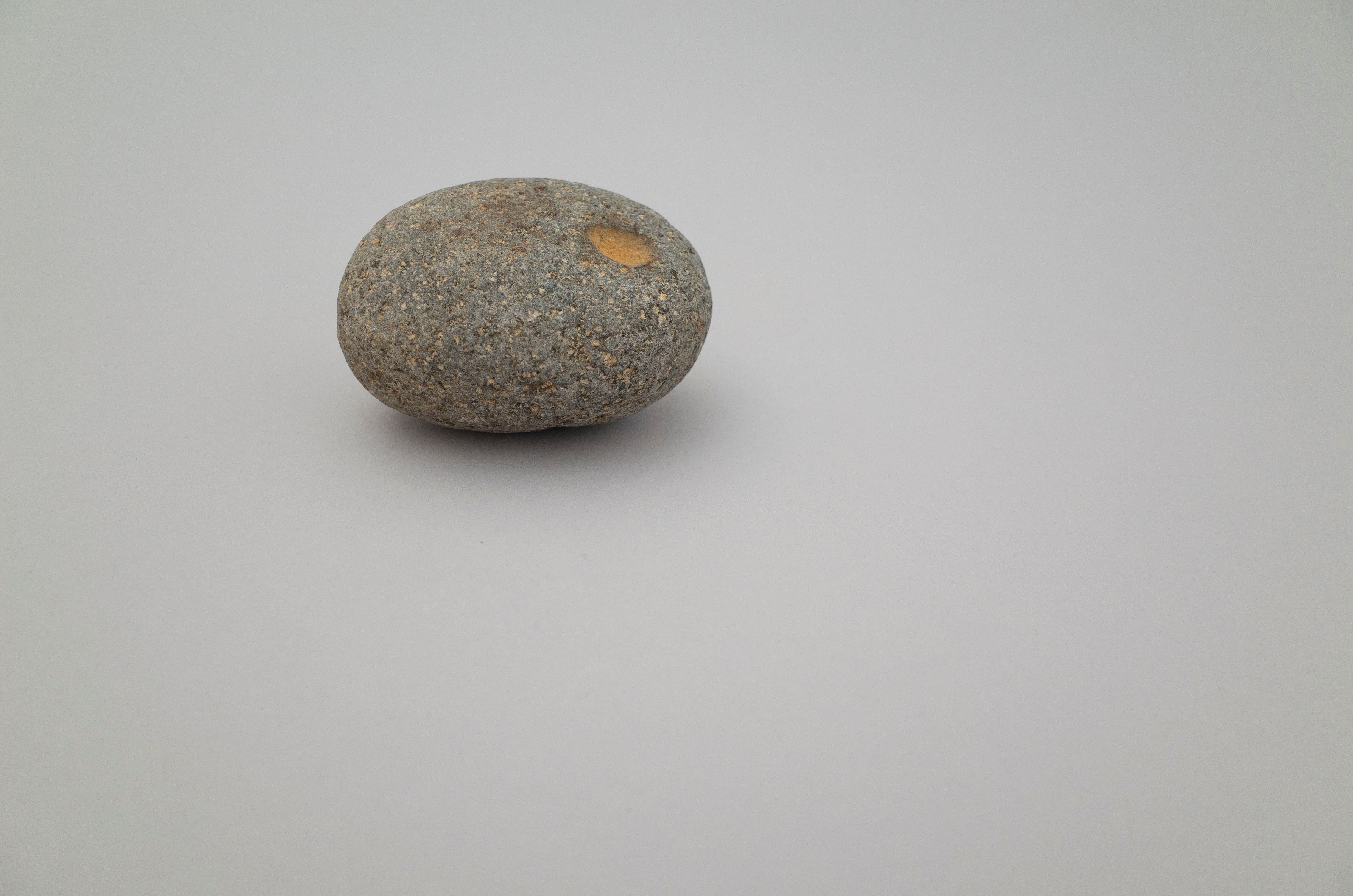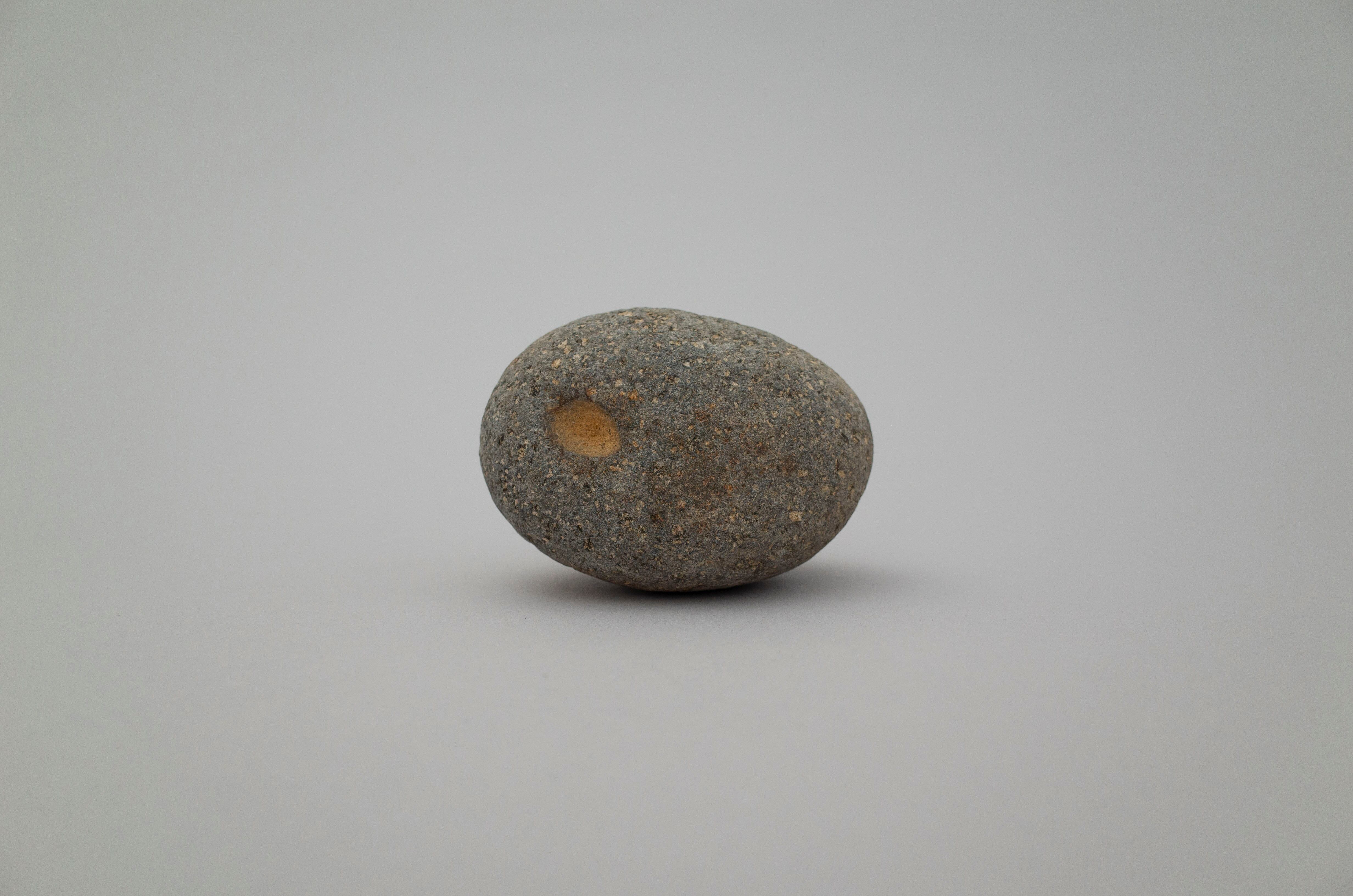 おへそのような、 お口のような、 卵の黄身のような。 ちょうど良い位置にちょうど良い大きさのくぼみ。 肌の色と違う色を覗かせている点もそそられます。 やさしい空気のキュートな石。 サイズ:10cm × 7cm 高さ:6cm こちらの商品は自然のものになります。 割れたり、汚れ等がございます。 ご購入の際は前向きに受け止め、ご注文下さい。