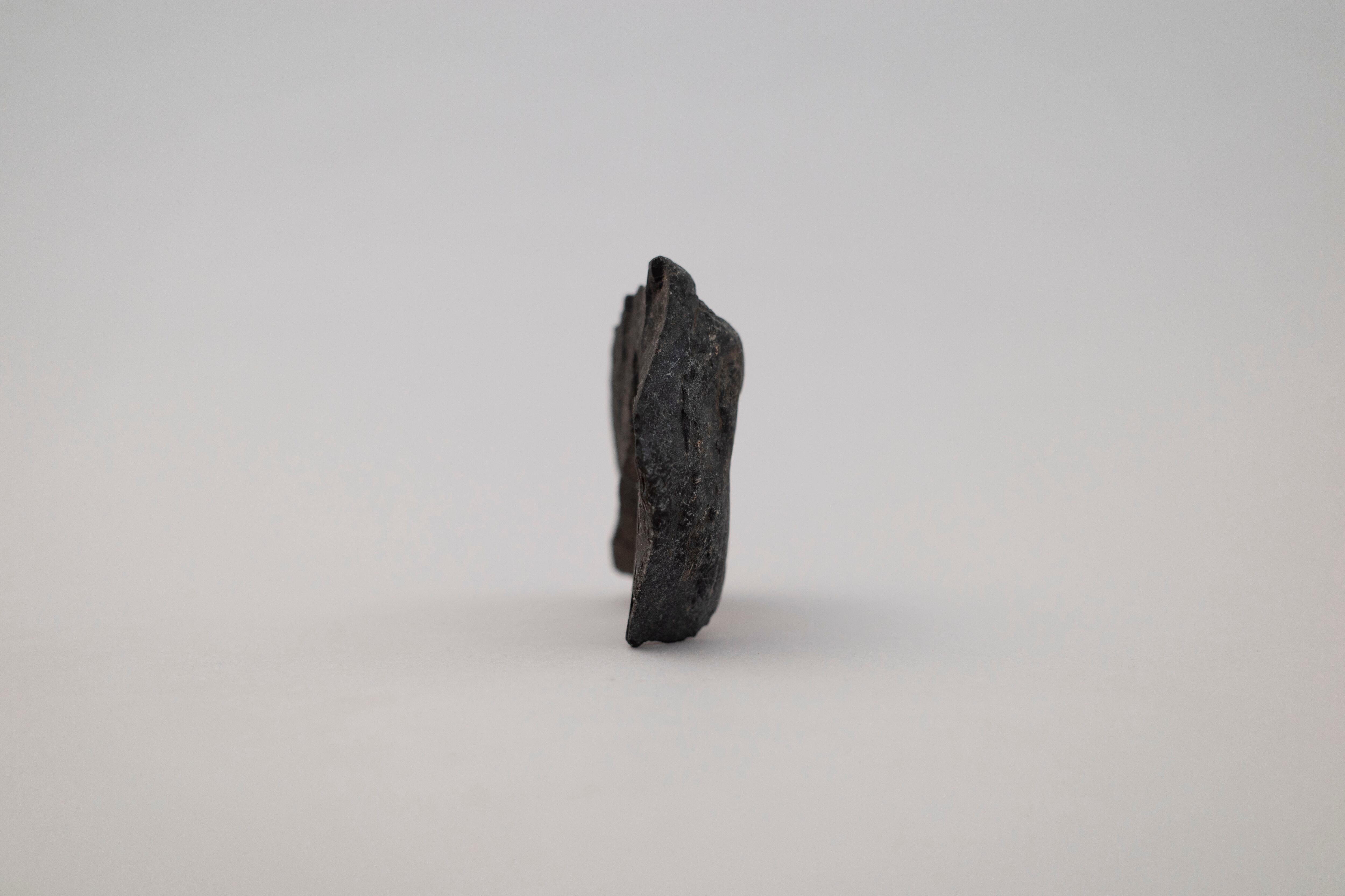 黒くマットな質感で立つ石。 ゆるい直線でパクッと割れた形が絶妙に格好良くて、気持ちいい立ち姿。 何度も言うよ。 立ってくれてありがとう。 サイズ:11cm × 7.5cm × 3cm 重さ:約270g こちらの商品は自然のものになります。 汚れ等もございます。 ご購入の際は前向きに受け止め、ご注文下さい。 商品画像は実際の色味に近づくよう撮影しておりますが、 多少の違いがある場合がございます。